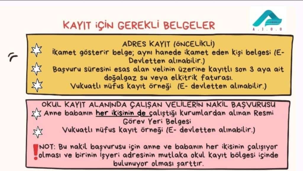 Not: Bu nakil başvurusu için anne veya babanın her ikisinin de çalışıyor olması ve mutlaka en az birisinin okul kayıt alanında çalışıyor olması gerekmektedir.