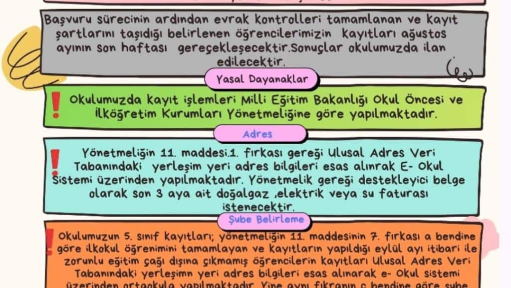 2025-2026 Öğretim yılı öncesinde okulumuza kayıt ve nakil müracaatında bulunmak isteyecekler için, okulumuza kayıt, nakil ve kayıt alanı ile ilgili aşağıdaki bilgilendirmeye ihtiyaç duyulmuştur.